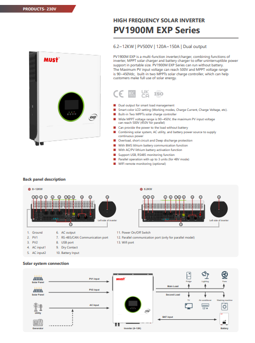 Nếu bạn đang tìm kiếm một giải pháp biến tần năng lượng mặt trời mạnh mẽ, ổn định và linh hoạt cho gia đình hoặc doanh nghiệp, thì sản phẩm Must PV1900M EXP sẽ là lựa chọn tối ưu, đáp ứng trọn vẹn nhu cầu sử dụng điện an toàn và tiết kiệm.