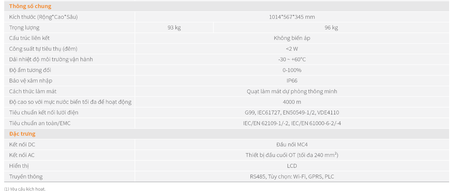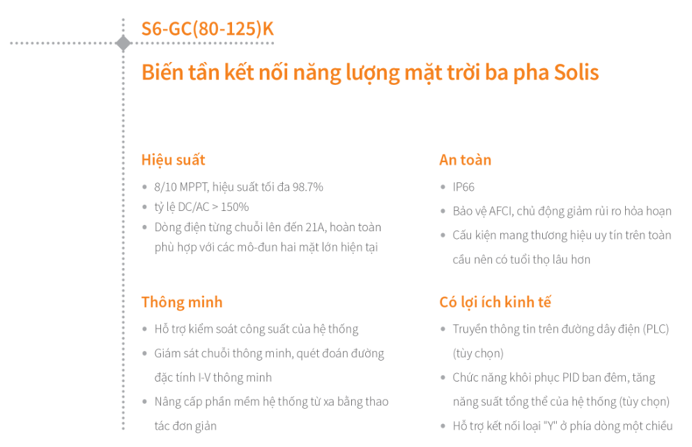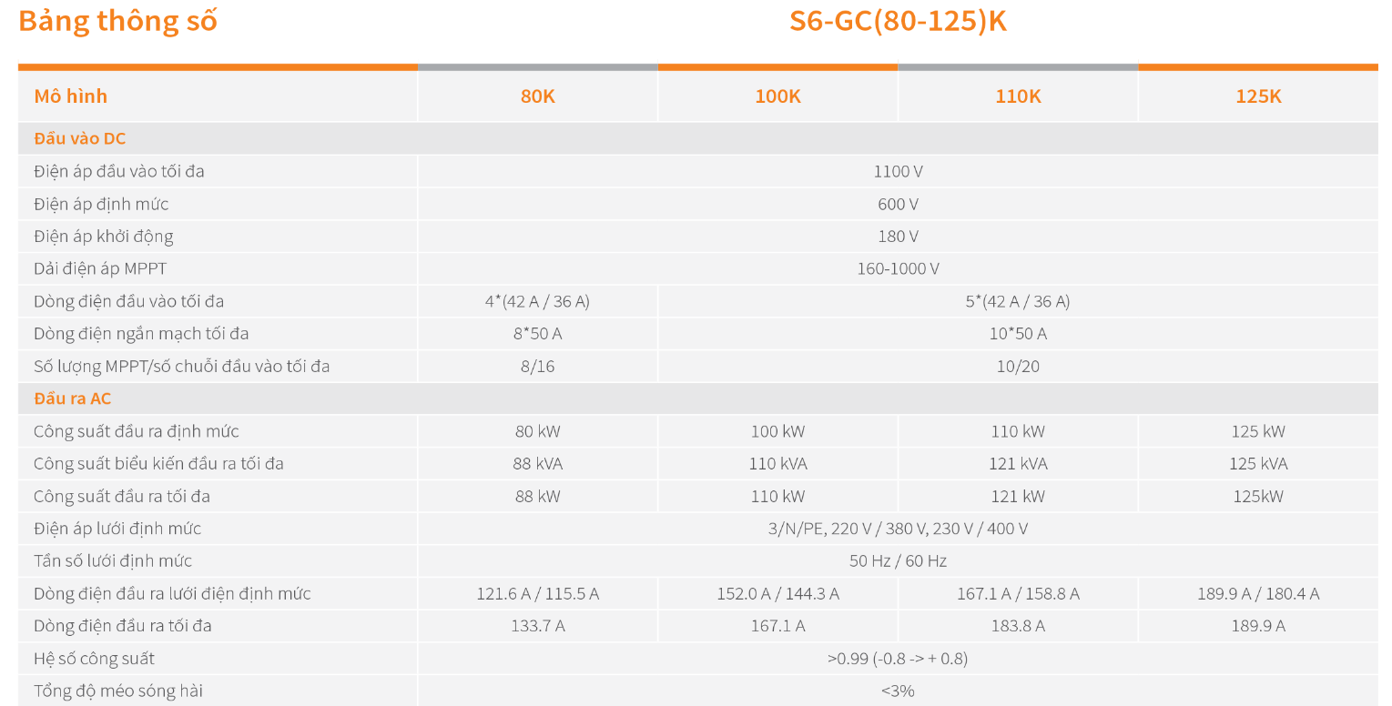 Thông số kỹ thuật Biến tần Solis 125kW – 5G